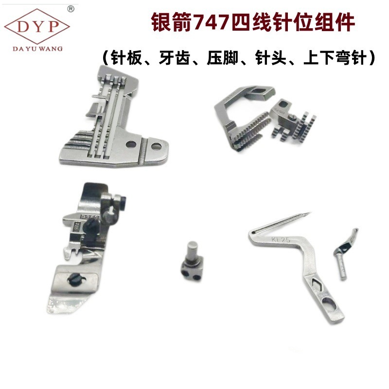 DYP DAYUWANG Silver Arrow 747 Overlock Machine Cover Stitch Needle Set Needle Plate Teeth Presser Foot Needle Clamp Curved Needle
