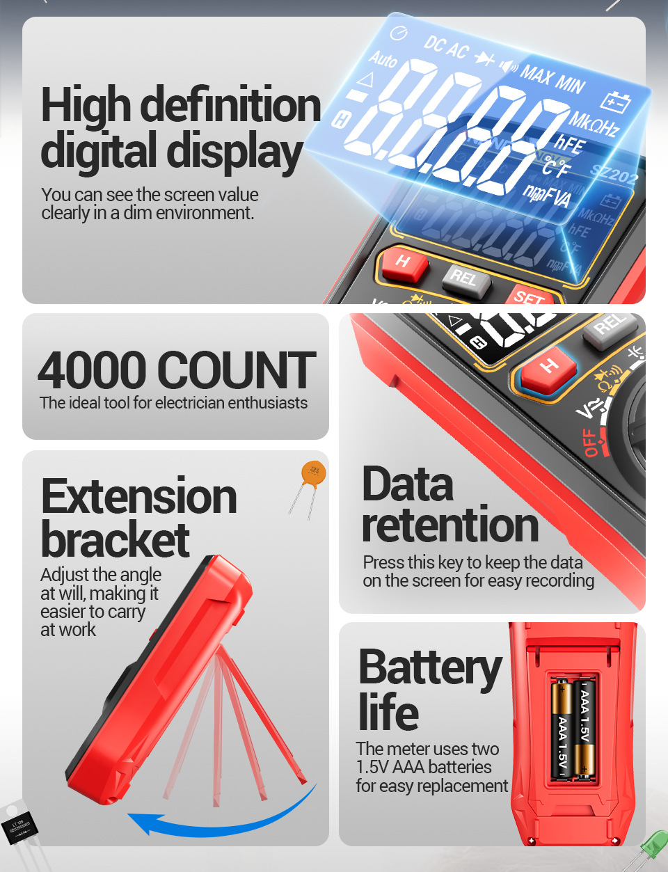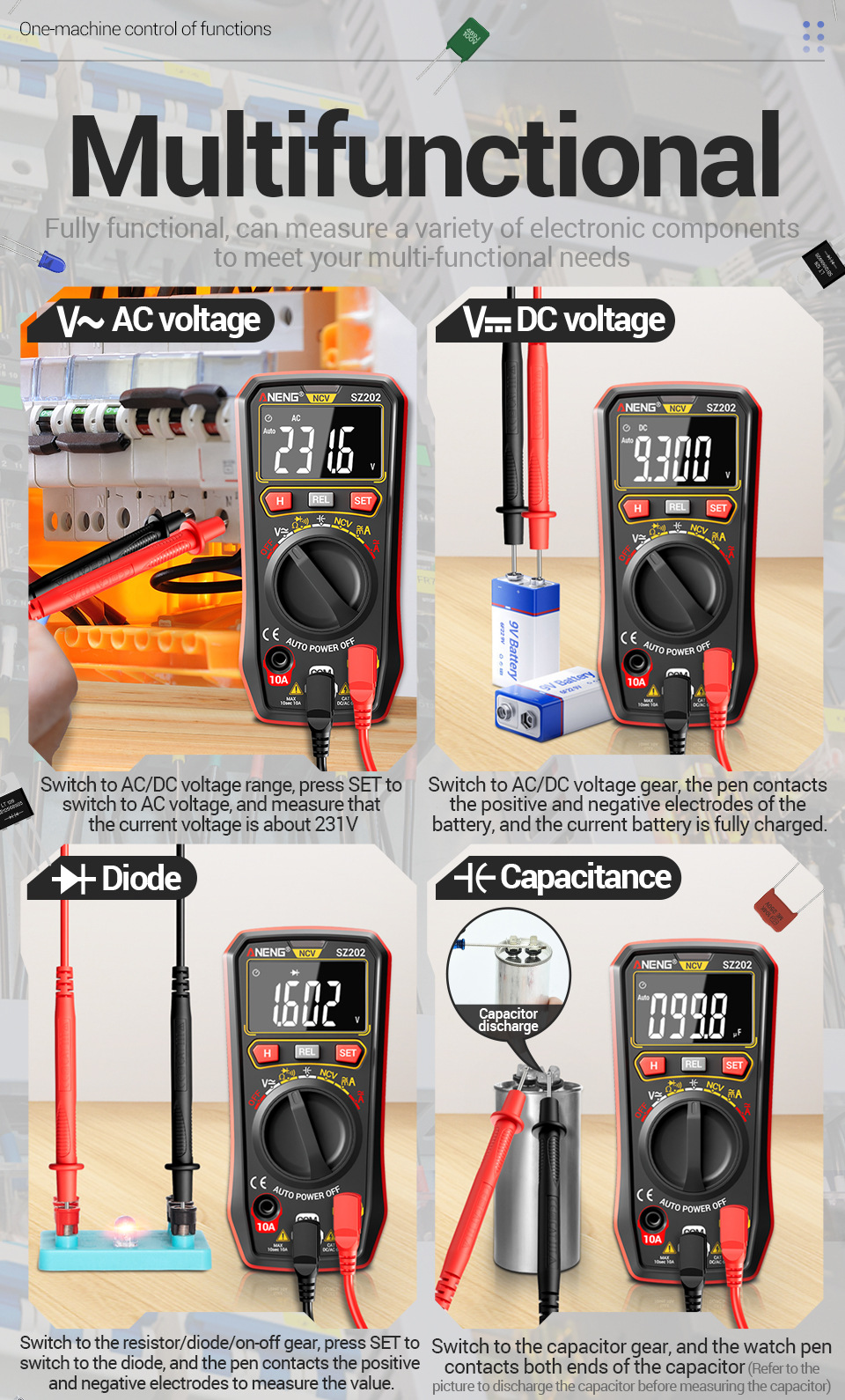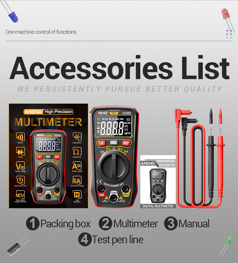 This product combines functionality, safety, and ease of use, making it an essential tool for anyone working with electrical systems. Whether you're a professional electrician or a DIY enthusiast, the ANENG SZ202 Smart Digital Multimeter delivers reliable performance for all your measurement needs.