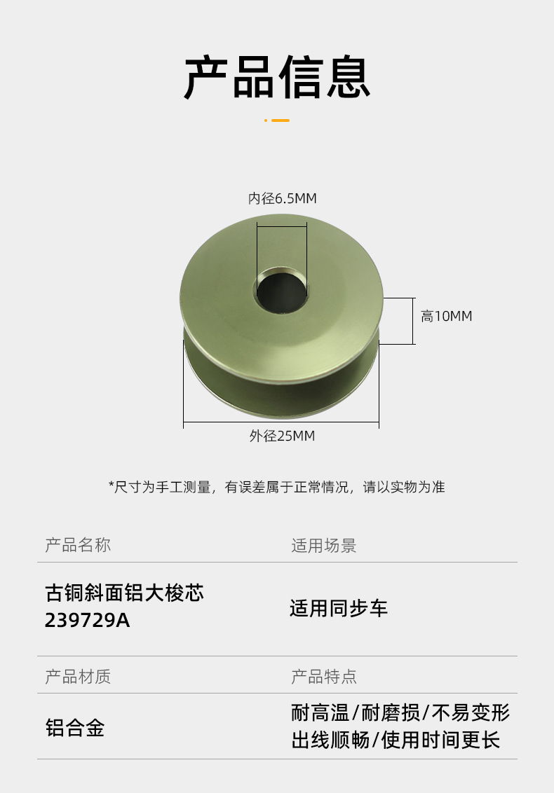 Computer-Synchronized Machine Aluminum Oxide Bobbin Large Antique Bronze Bobbin Bevel Pattern Machine Lock Core 2.5cm 6-5 6-7