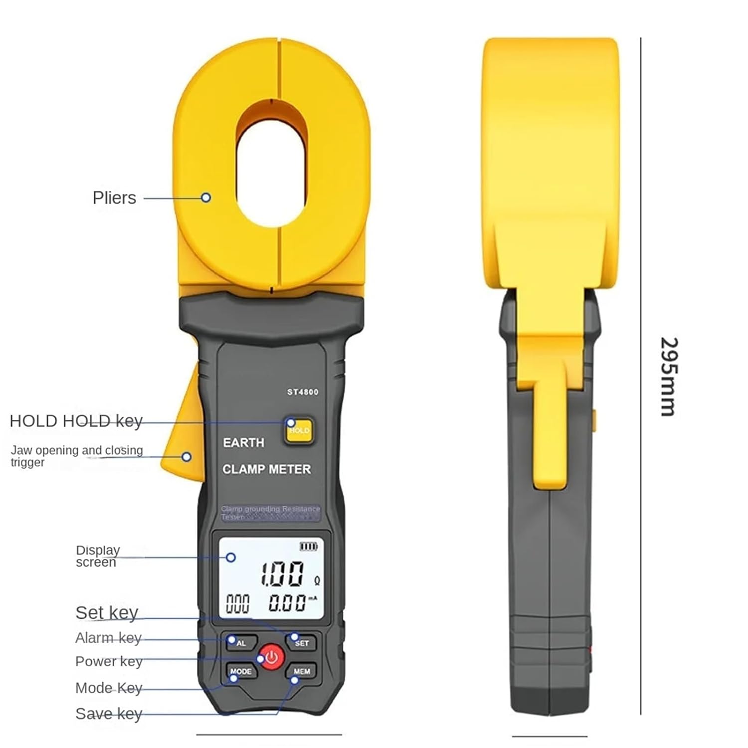 VINDAION ST4100 Clamp-on Ground Resistance Tester - High Precision Digital Earth Resistance Meter for Lightning Protection, Loop Resistance Testing, 0.01Ω-500Ω Range, IEC61010 Safety Certified