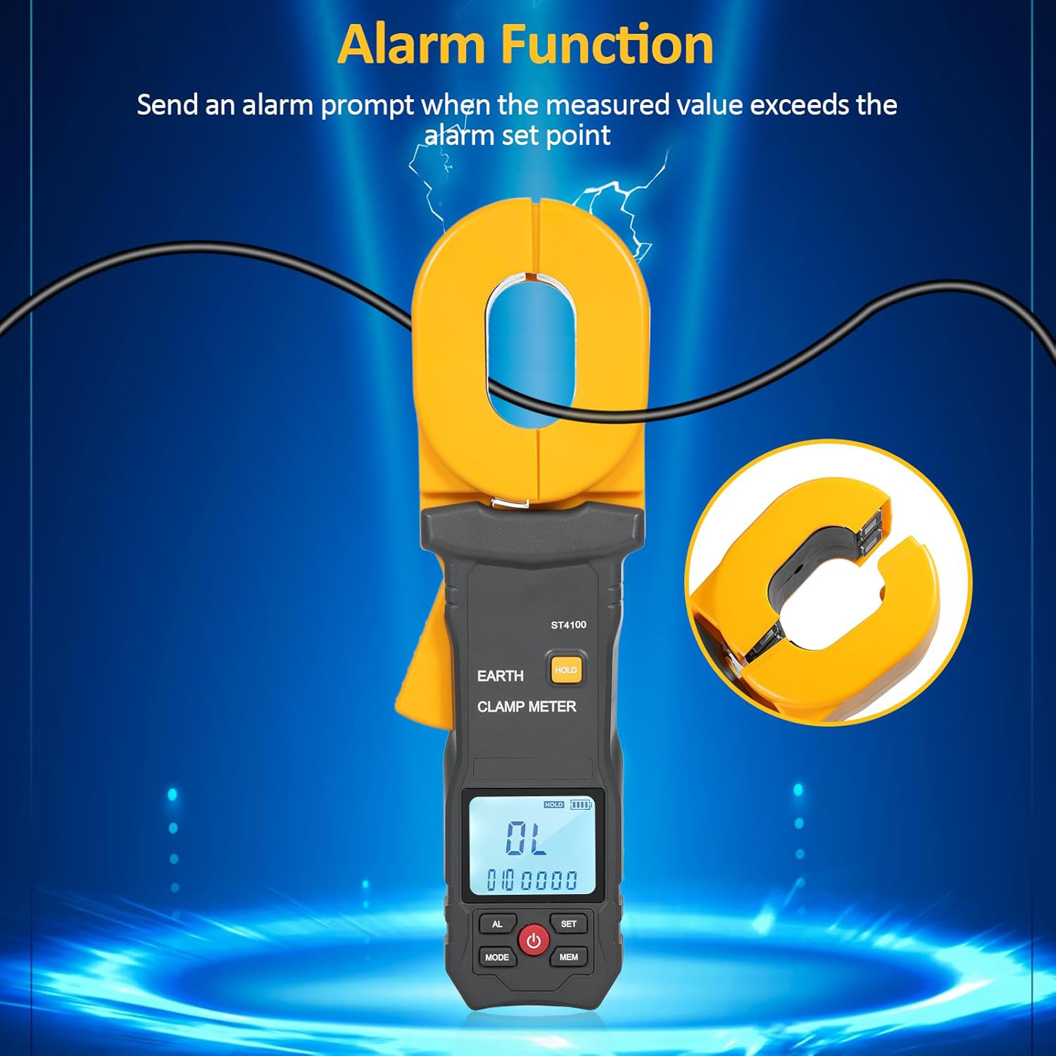 - Clamp-on Design for Easy Operation: No need to disconnect the grounding system or use auxiliary electrodes. Simply clamp around the grounding conductor for instant readings, saving time and effort.